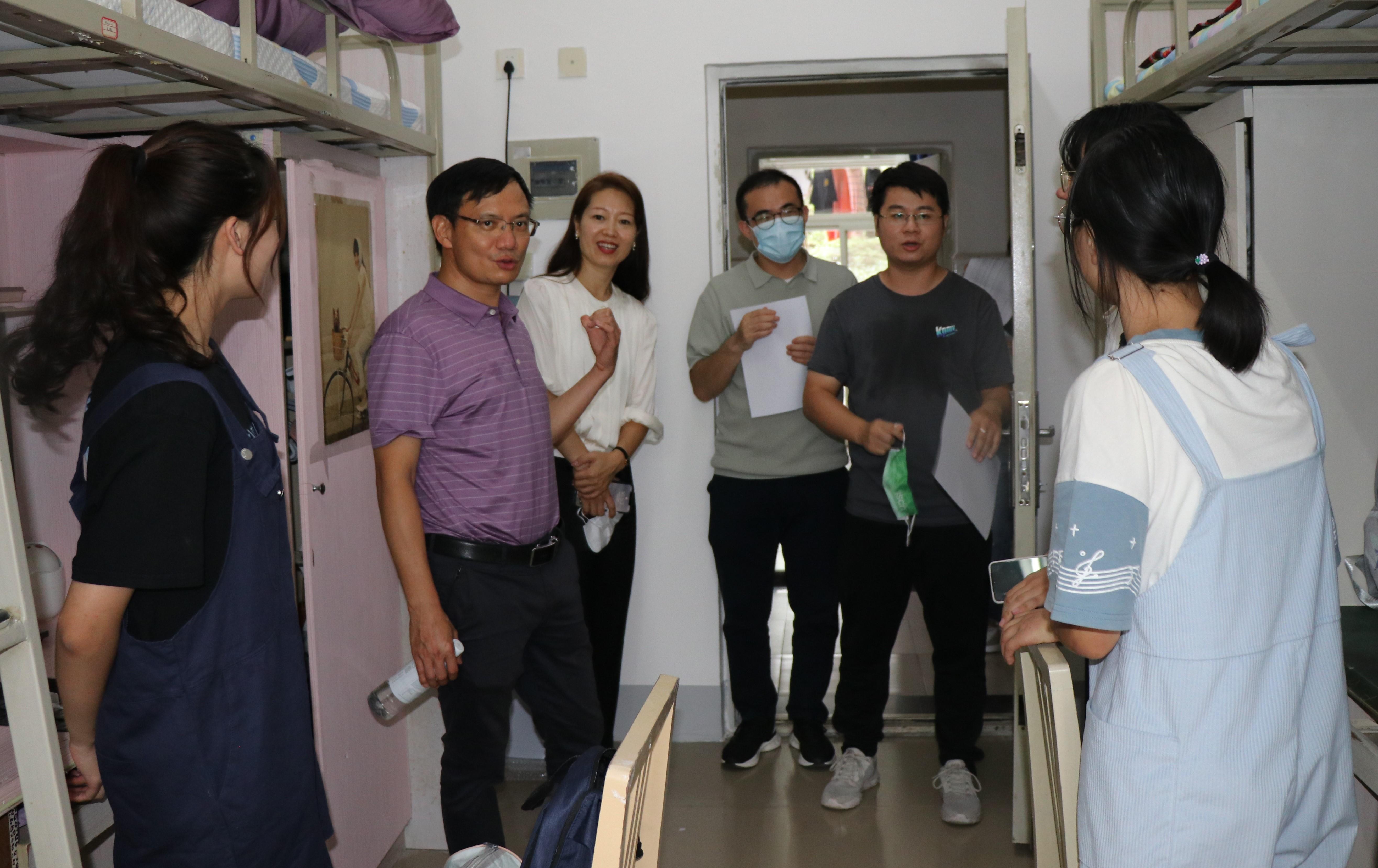 何正友院长、罗妍妍副书记带领学生管理办公室全体老师和青年教职工走访2021级本科生寝室,看望慰问新生。