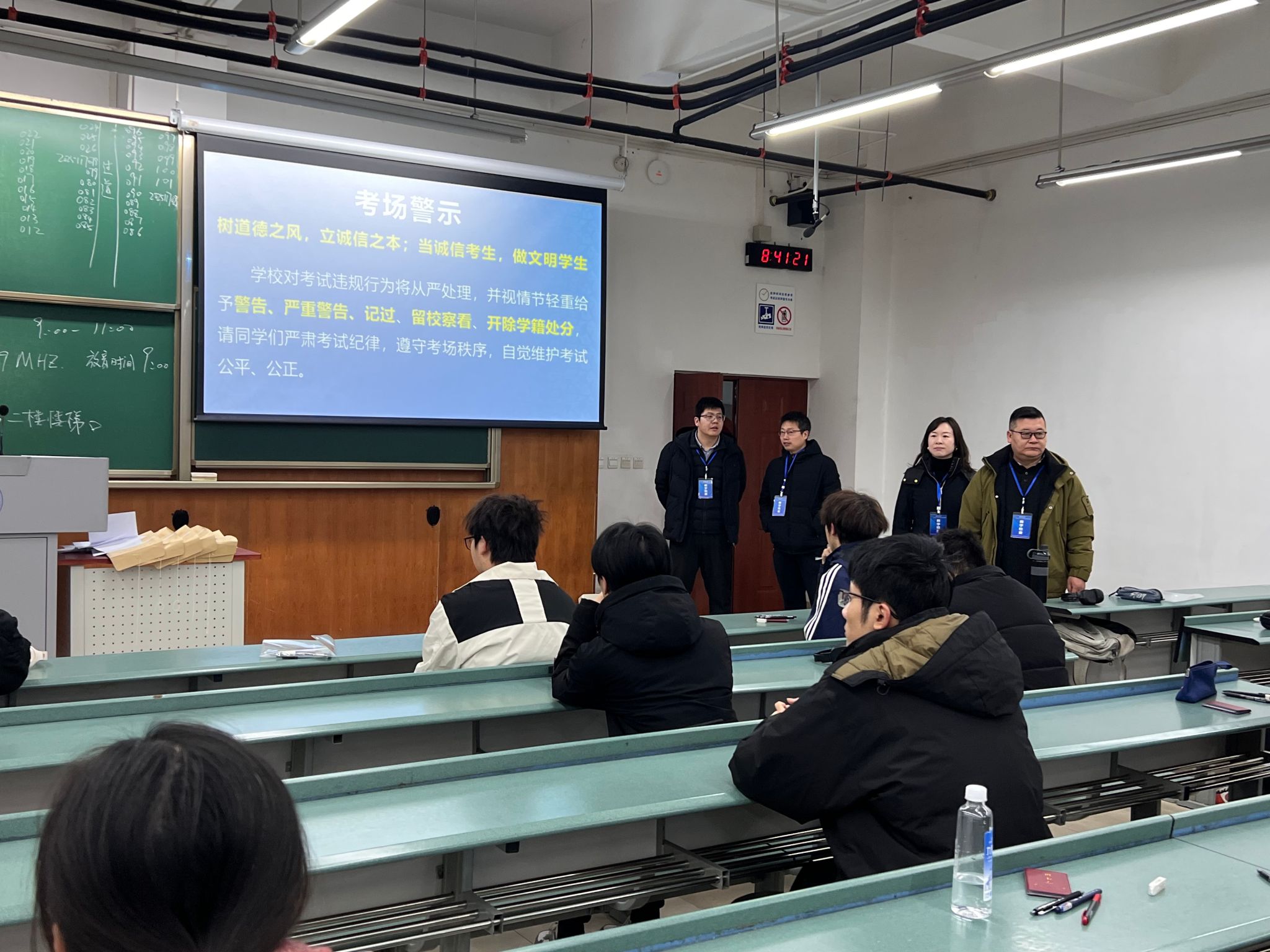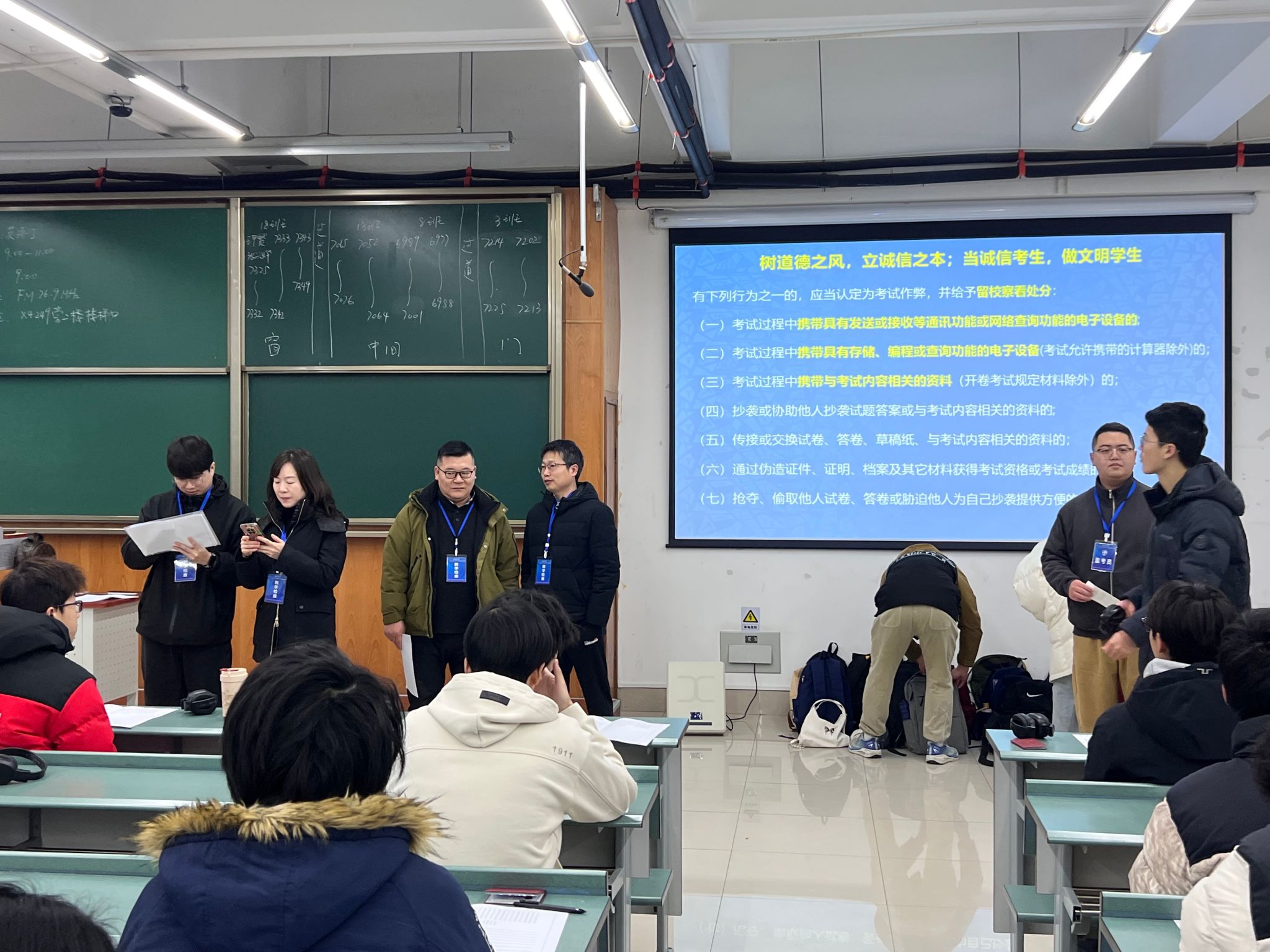 本科生和研究生考试各考场,重点围绕考场纪律、监考履职、考生状态三大方面进行细致检查与督导。从检查情况来看,监考老师均按时到岗,坚守监考底线,对违纪行为“零容忍”,切实维护考试公平。考生们按时到场,凭有效证件有序入场,自觉将手机等通讯设备关机后放入指定收纳袋,展现了当代大学生的自律意识与优良学风。