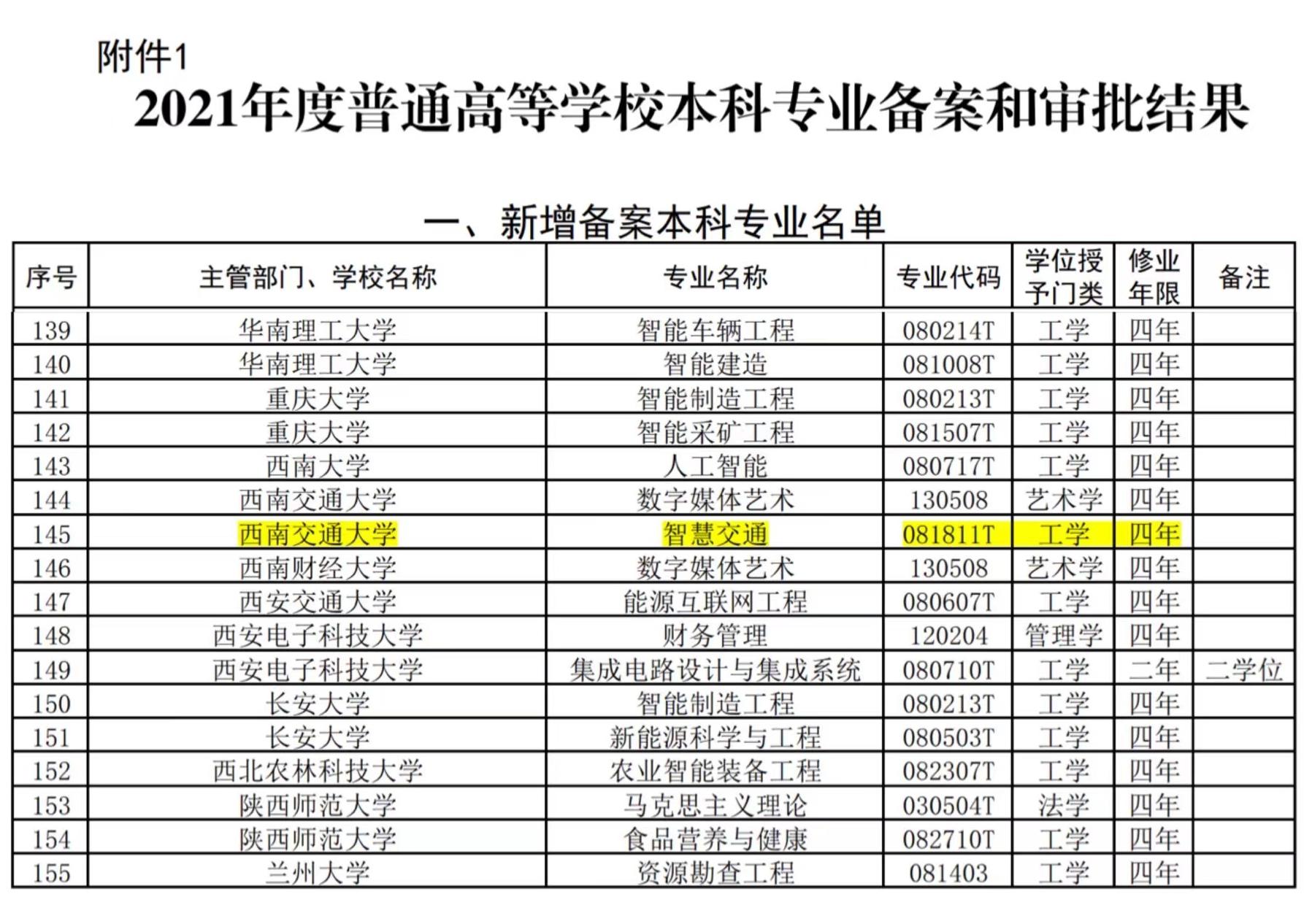 申报的新工科专业智慧交通顺利通过教育部备案。