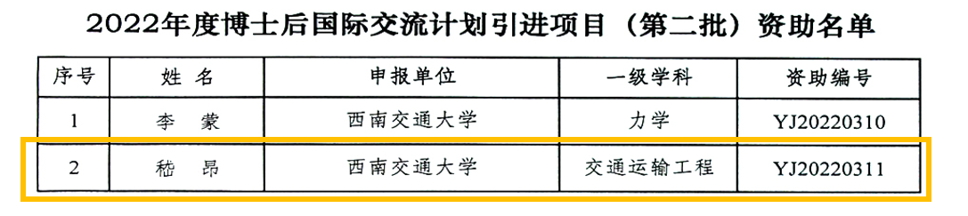 11月21日,全国博士后管理委员会发布了2022年博士后国际交流计划引进项目结果通告,av影片直播 青年教师嵇昂获得了第二批立项。