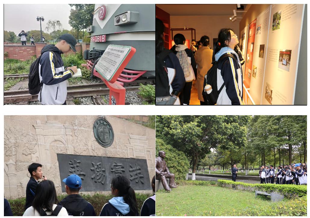 上午9:00,新津中学的同学们沿着犀浦校区“南北人文轴”参观游览,从机车博物馆到竢实扬华碑,再到孙中山先生像,随着校园大使常齐轩同学的生动讲解,学生们聆听交大源远流长的历史文化,了解交大先辈们爱国荣校的奋斗故事,感受“竢实扬华,自强不息”的交大精神。