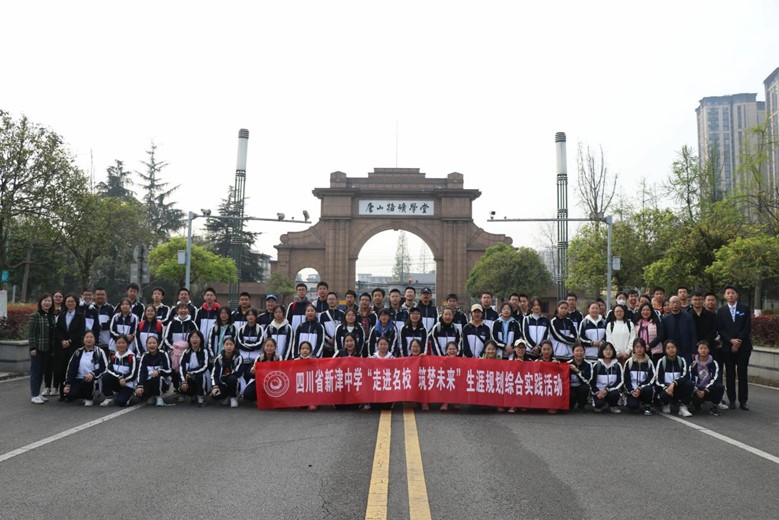 的同学们与新津中学的学生们进行交流互动,分享丰富多彩的大学生活,现场气氛热烈、井然有序。