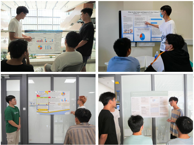 本次《英语文献阅读与交流》课程Poster Presentation活动将PBL教学法引入课堂,安排学生们深入了解各类社会现象与问题、关注民生、确定选题,充分体现新工科人才培养特色。项目研究选题丰富,价值取向积极,有的与专业知识紧密相关,有的符合大学生的普遍兴趣,有的直击大学生生活与学习的痛点,有的紧扣校园与社会热点问题。在课程老师指导下,学生们从研究项目的确立到研究问题的细化、从文献资料的查找到问卷调查的设计、从数据的整理分析与描述到海报版面的布局与设计、从学术词汇的积累到演讲技能的提升等分阶段进行精心准备,并通过海报自信进行展示,体现了当代大学生诚实的治学态度、较强的思辨能力与人文素养。学生们也纷纷表示,自己在学术思维训练、学术素养提升、学术英语表达等方面取得了长足和明显的进步。