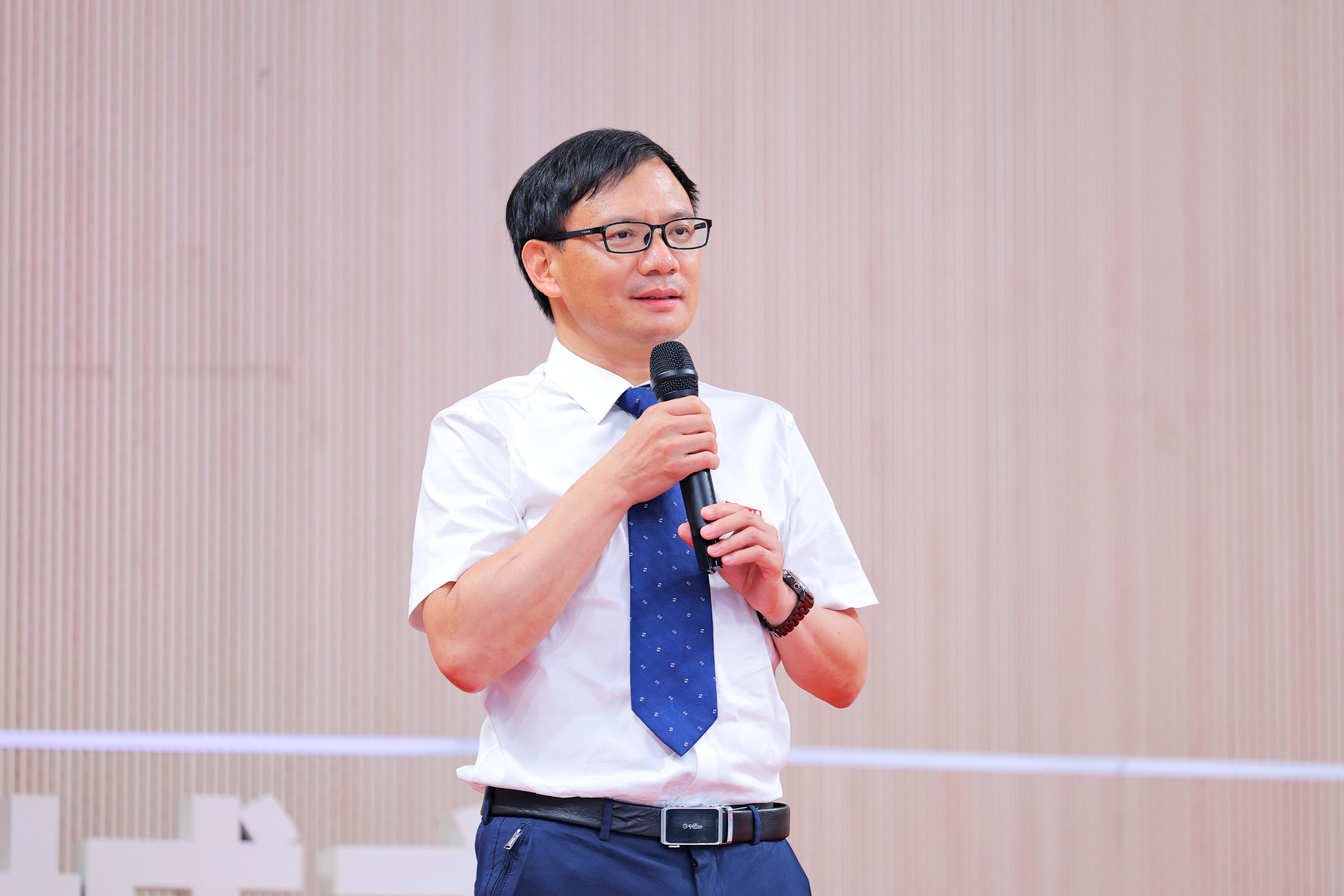 院长何正友以《唯有爱,才能行稳致远》为题寄语新生。他回忆中国女排在开学典礼体育馆内勇夺大运会排球项目冠军的精彩瞬间,勉励新同学们学习和发扬中国女排精神,团结拼搏、为国争光,并勇敢地去爱:爱祖国,“饱含深情的去爱我们的国家、热爱我们的祖国,以家国情怀担当青年使命”;爱专业,人的发展由能力决定,不由专业决定;爱团队,加强运动和真诚交友,“多关心关爱别人,要有团队精神,不要变成一个精致的利己主义者”。何院长表示,大学是立德树人的地方,是塑造价值观的地方,更是培养爱的能力的地方,希望大家在实践中培养能力、在学习中开阔胸怀、在奋斗中经历成长、在挑战中赢得未来,永远坚持和相信:“唯有爱,才能行稳致远!