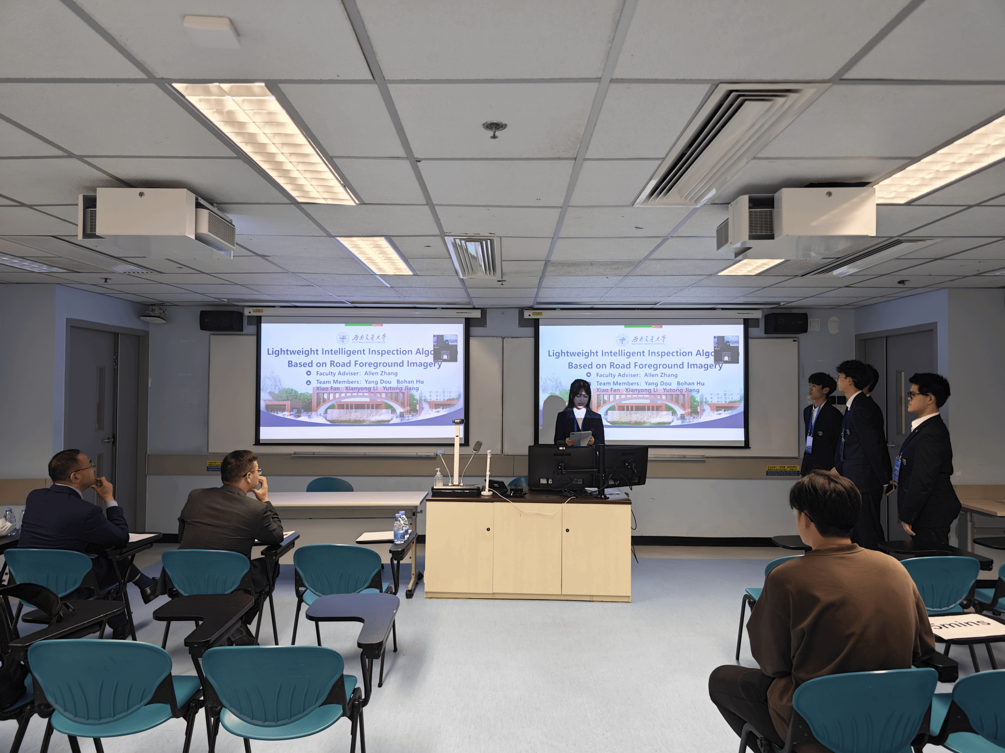 参赛队伍分别以Based on Road Foreground Image: A Lightweight lntelligent Inspection Algorithm(基于道路前景图像的轻量化智能巡检算法)和A road energy harvesting and conversionsystem based on bidirectional AC/DCmultilevel DAB converter(基于双向AC/DC多电平DAB转换器的道路能量收集与转换系统)为题,全程使用英文陈述和探讨了利用人工智能深度学习技术来精准、快速掌握道路交通资产、路面病害的状况及相关统计数据和“道路能量”的收集储存及直流电与交流电高效率转换问题,并根据评委现场提问进行答辩。