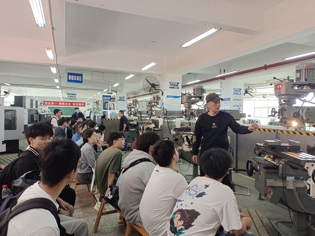 下午1点,同学们前往在致远楼一楼机械加工中心进行机械加工实训。刘建平和龙成海为同学们讲解了普铣车床和数铣车床的相关知识,并指导同学们上手实操。