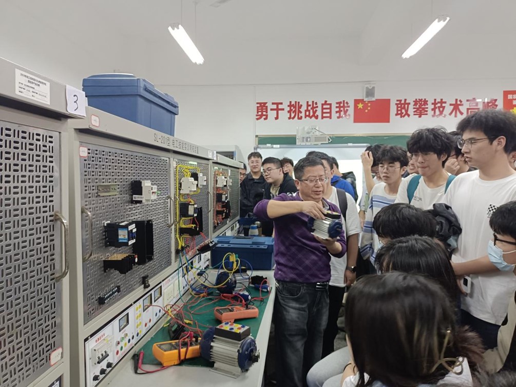 同学们抵达九洲科技工业园后,何苓媛为同学们介绍了活动流程,即电气控制实训、机械加工实训、参观九洲集团创新展示中心。
