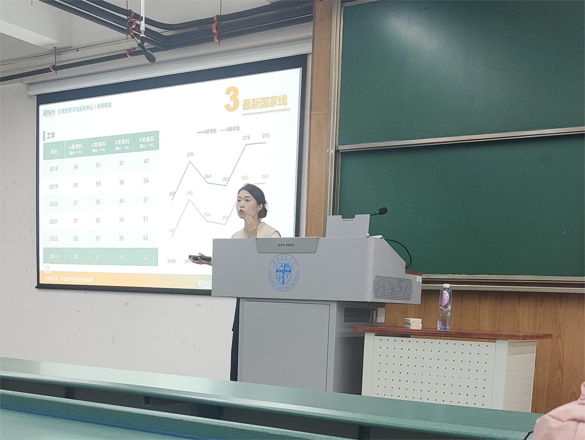 学生会于10月25日在x4352教室开展考研、留学科普讲座,主讲嘉宾是来自新东方大学生学习与发展中心涂荣倩老师和前途出国的廖绿依老师,共260余名学生参与此次活动。