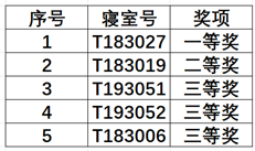 学生园区自我管理委员会承办的第二届“小装潢·大智慧”新生宿舍装潢大赛,经团队报名、寝室装潢、材料初审和线下终审,最终评选出:一等奖1名、二等奖1名、三等奖3名。现将获奖名单公示如下: