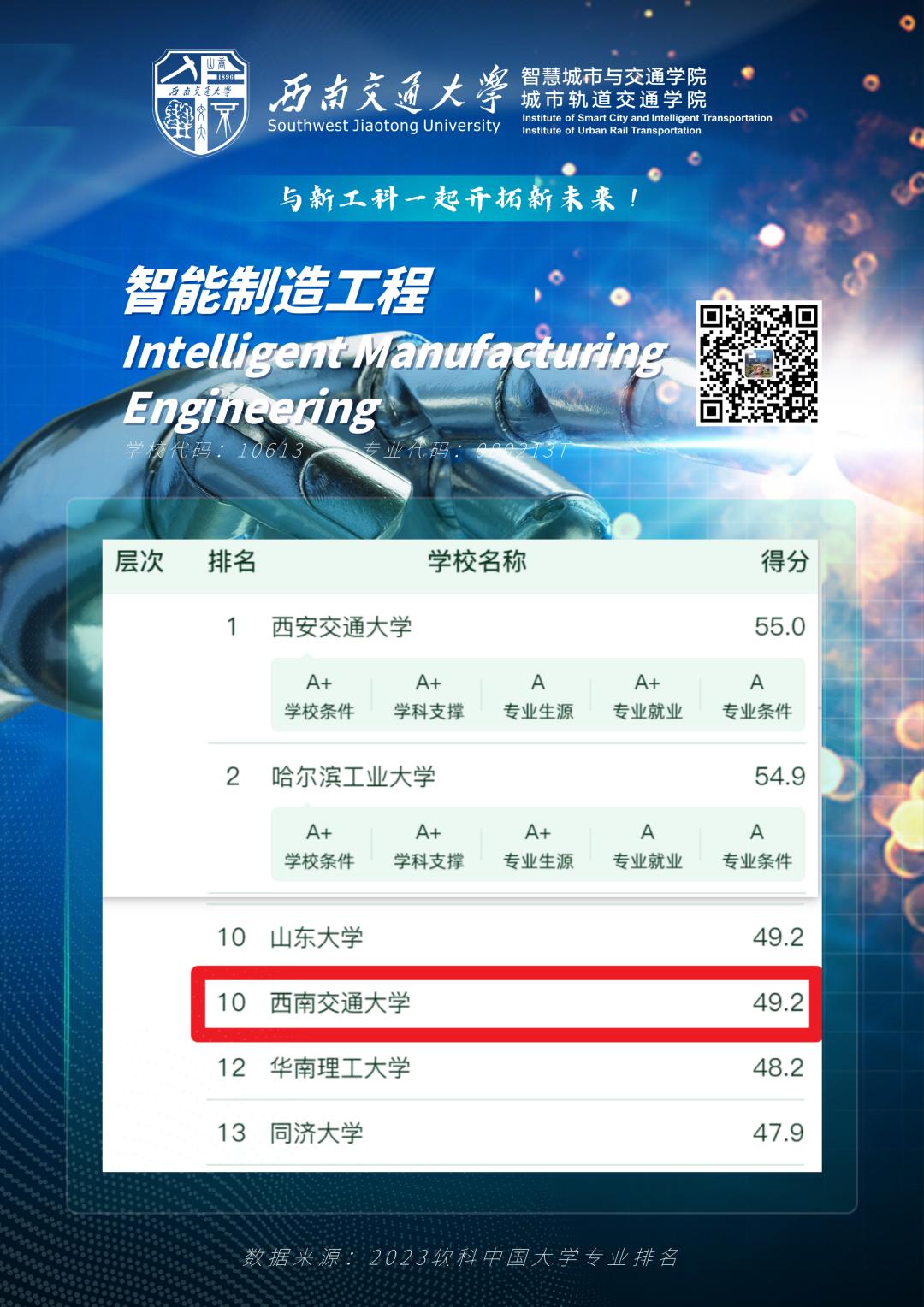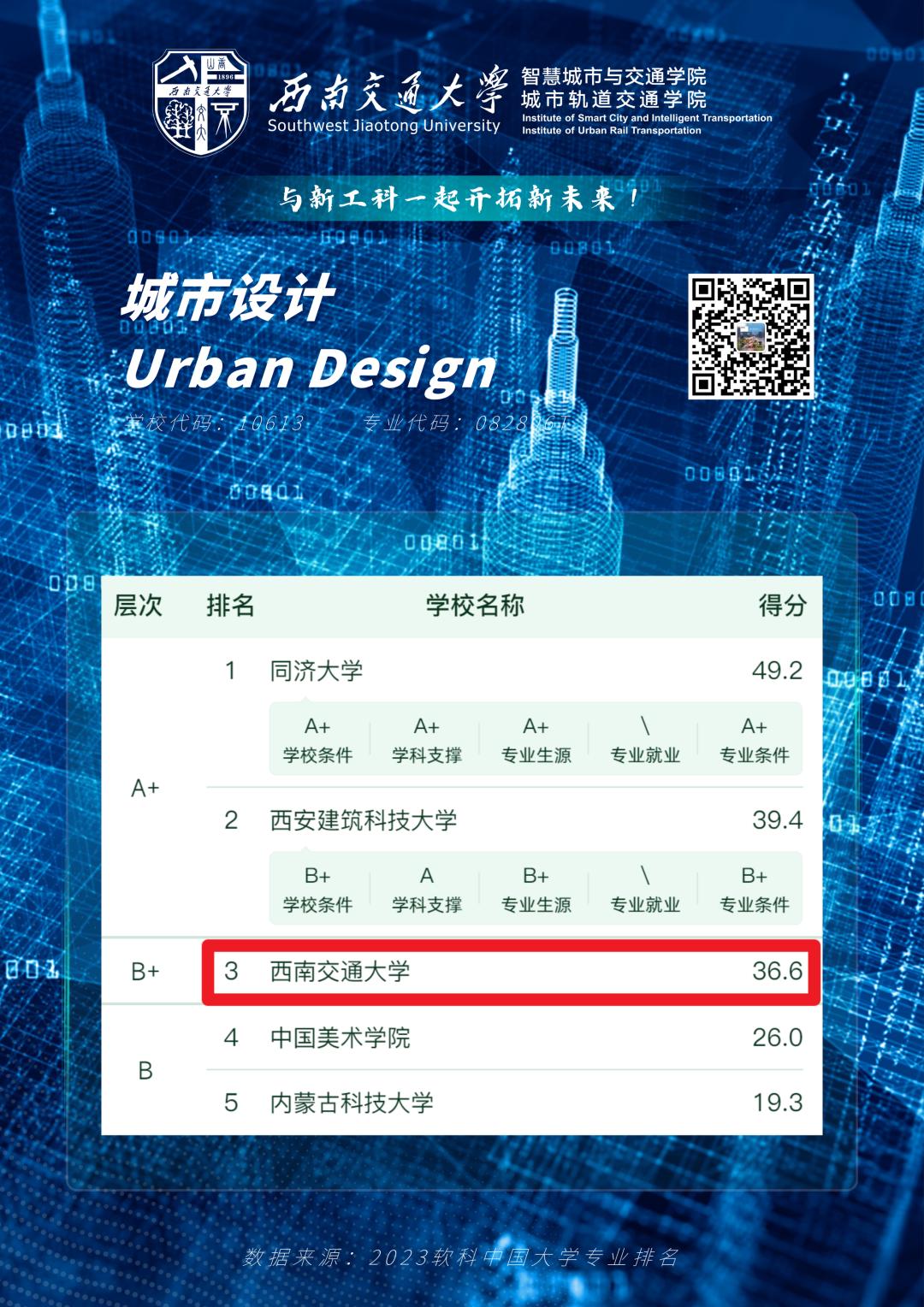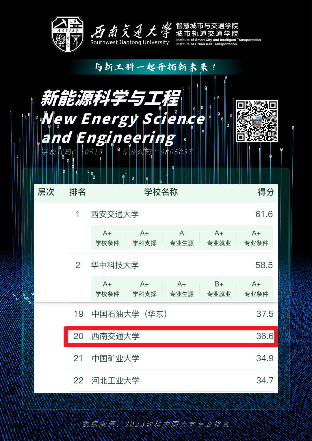 智能建造、智能制造工程位列A层次,排名全国第5、第10。新能源科学与工程、城市设计位列B+层次,排名全国第20、第3。智慧交通位列A+层次、排名全国第1。五个新工科专业全部上榜,彰显了av影片直播 和av影片直播 在人才培养方面的专业实力。