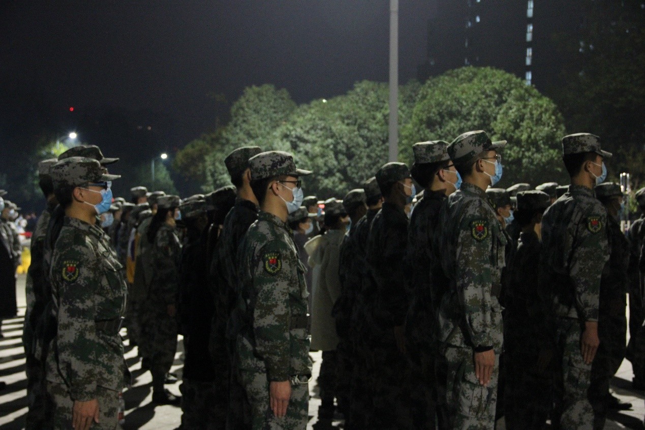 李昊杰、牛玉杰、王少宁、李搏文、陈卓锐、李龙菲、任曦、樊潇等多名同学以国旗班成员和志愿者的身份参加此次行动,协助布置现场并维护秩序,帮助医护人员更好地开展工作,至5日早5时全校核酸检测完成后方才离开休息。经此一晚,他们更加感受到了国旗班肩上的重任,深刻体会到了疫情之下大家的辛勤不易,同时感谢大家的付出与配合。