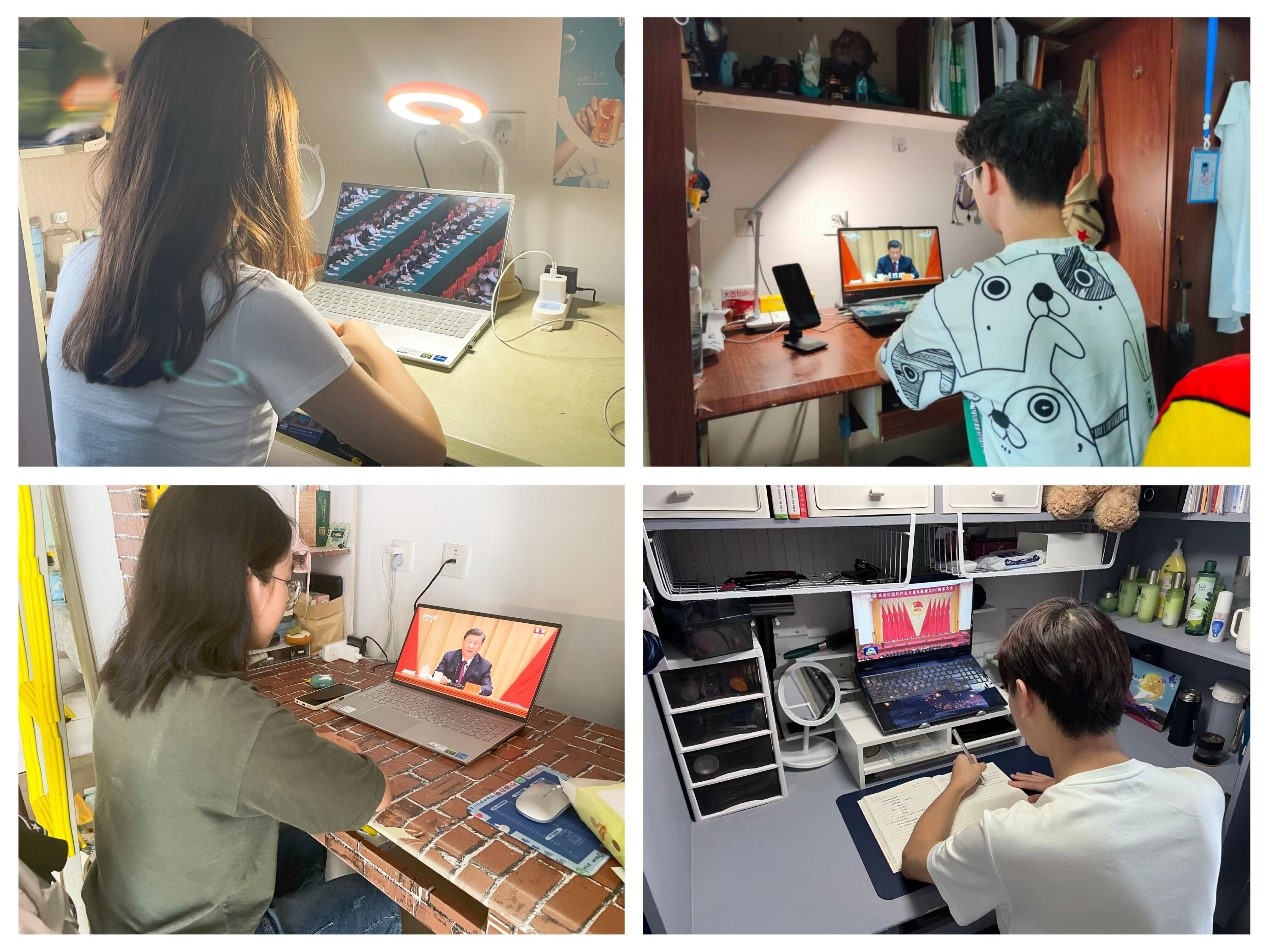 av影片直播 党委副书记罗妍妍、学生管理办公室和党群工作办公室工作人员、学生团干部和团员代表在X31641集中观看直播,av影片直播 其他教职工和学生在办公室、学生宿舍等场所观看。