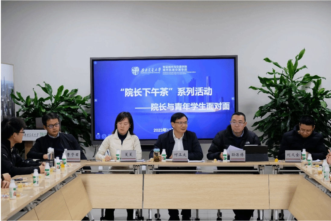 正在开展第六期“院长下午茶”活动。院长何正友、副院长孙湛博、综合办公室主任高江波、学生管理办公室主任夏夏、发展保障办公室副主任刘义全、智能建造2023-01班学术导师曹子君、智能制造2022-05班班导师文扬东及31名学生代表参加本次活动。