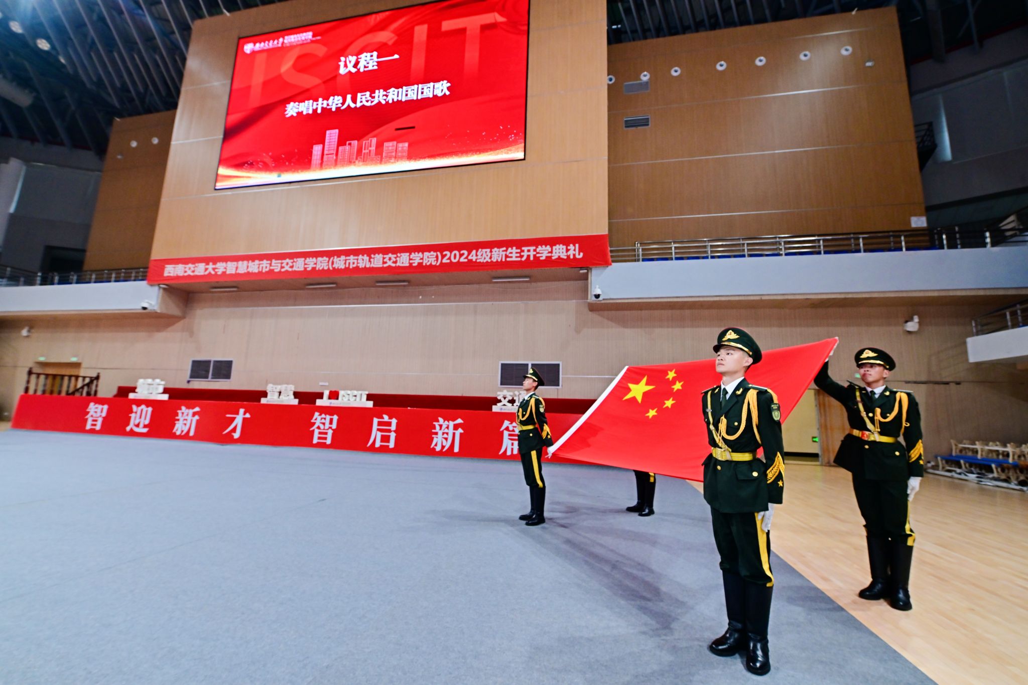 雄壮激昂的国歌响彻会场