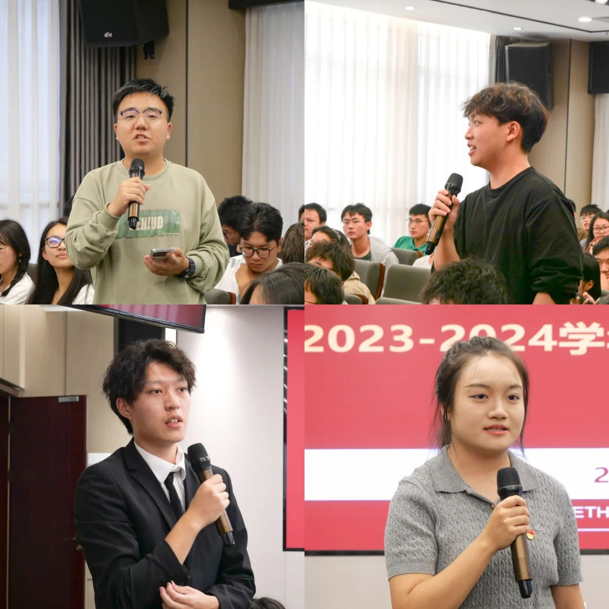 在交流环节,低年级同学向学长学姐询问有关学术竞赛、时间分配、人际交往、自我管理等方面的问题,收获到了学长学姐的耐心解答,更坚定了大学学习生活的前行方向。