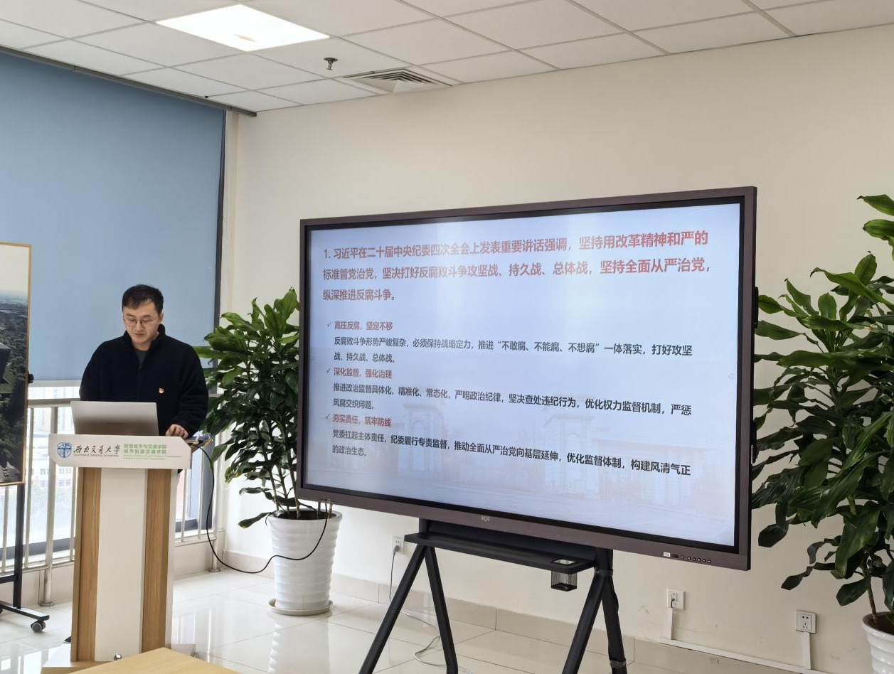 各党支部严格遵循“学习教育强国纲要,推动高质量发展”主题,系统开展专题理论学习。教工党支部王泽华同志、东部(国际)校区管委会党支部书记高红波、学生第一党支部陈世鸿、第二党支部魏岚、第三党支部陈卓、第四党支部周敬添等同志担任主讲人,全面领学习近平总书记在二十届中央纪委四次全会上的重要讲话精神,深入解读会议公报及《健全全面从严治党体系》核心思想,着重强调要以“严字当头”的政治自觉深化管党治党,切实筑牢拒腐防变思想根基。围绕建成教育强国战略目标,各支部通过集中领学、视频解读等方式,专题研学《教育强国建设规划纲要(2024—2035年)》及2025年全国教育工作会议精神,系统回顾新时代教育领域改革重大成就,精准把握国家教育发展战略方向。立足全面深化改革的时代命题,着力强化守正创新意识,切实破解发展瓶颈,全面提升服务国家战略需求的综合能力。