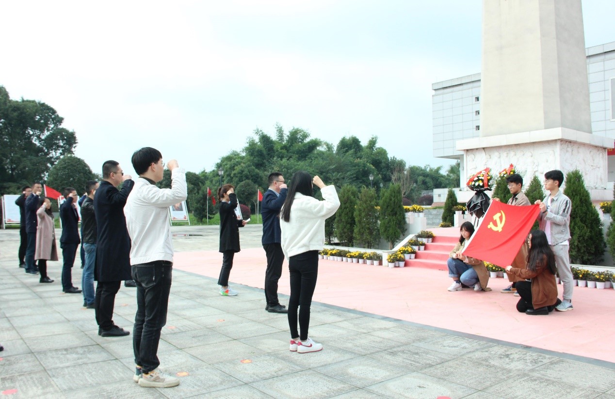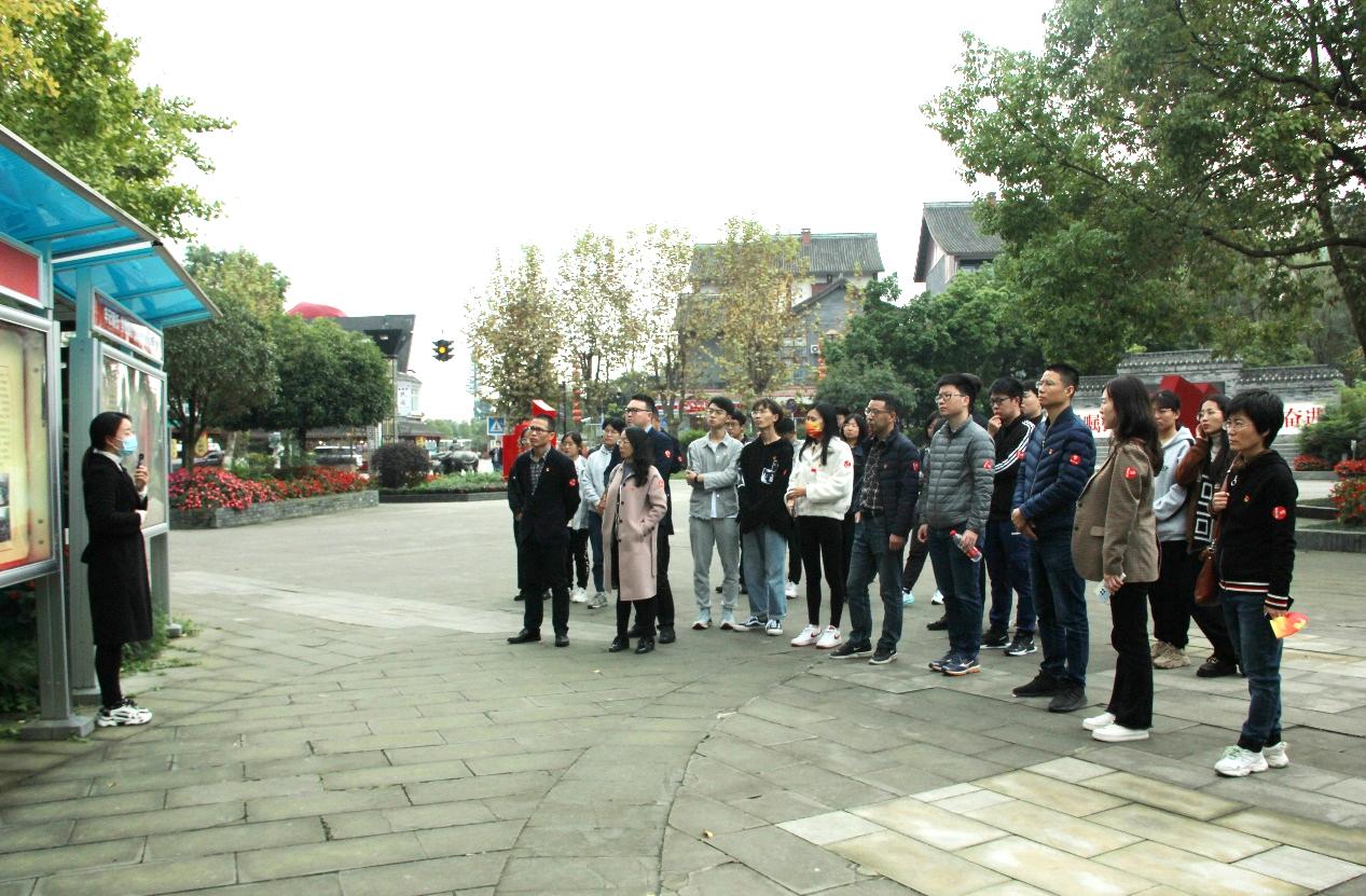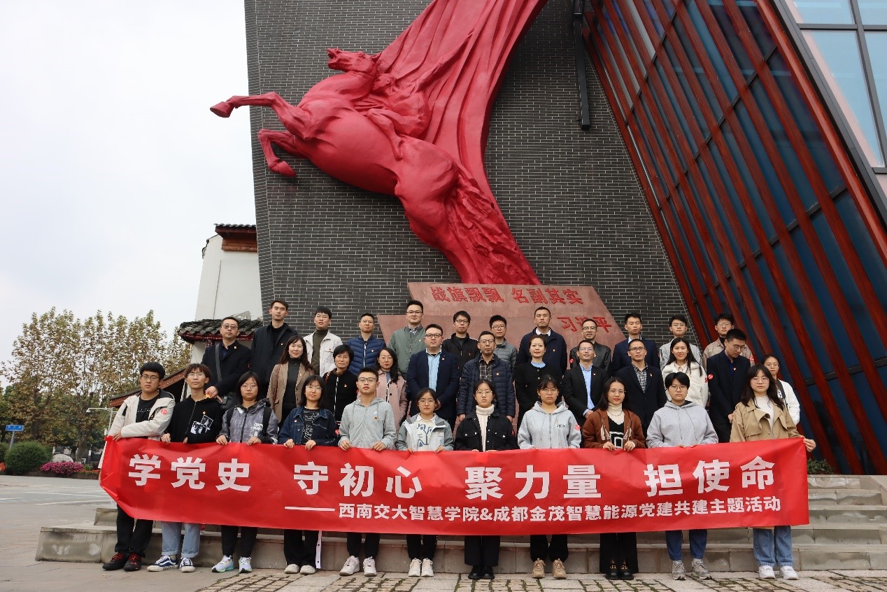 10月28日下午,av影片直播 机关党支部与成都金茂智慧能源科技有限公司党支部赴郫都区烈士陵园和战旗村开展“学党史 守初心 聚力量 担使命”党建共建主题党日活动。av影片直播 党委副书记罗妍妍、教职员工、2021级学生骨干和成都金茂智慧能源科技有限公司刘政总经理、郎秀峰党支部书记等参加活动。