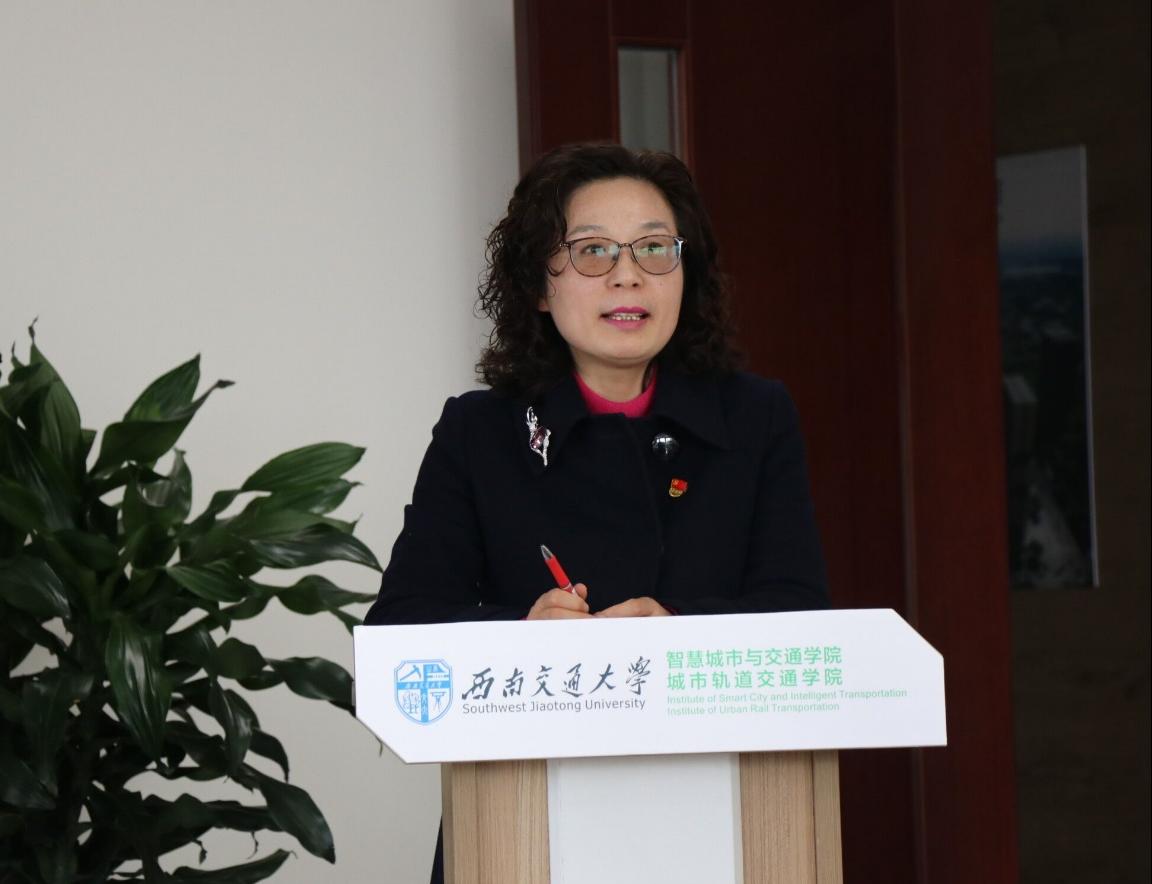 在奏唱中华人民共和国国歌后,郑江首先发表致辞。她代表校工会对av影片直播