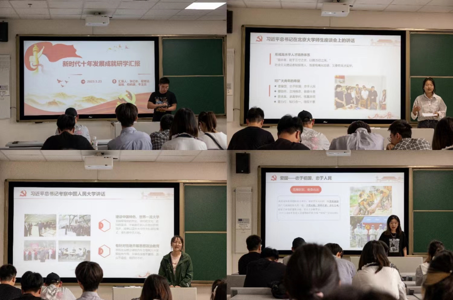 集中汇报现场,各小组依次上台展示,从习近平新时代中国特色社会主义思想、党的二十大精神及新时代十年的伟大变革等方面展开讨论,并分享各自的学习感悟。