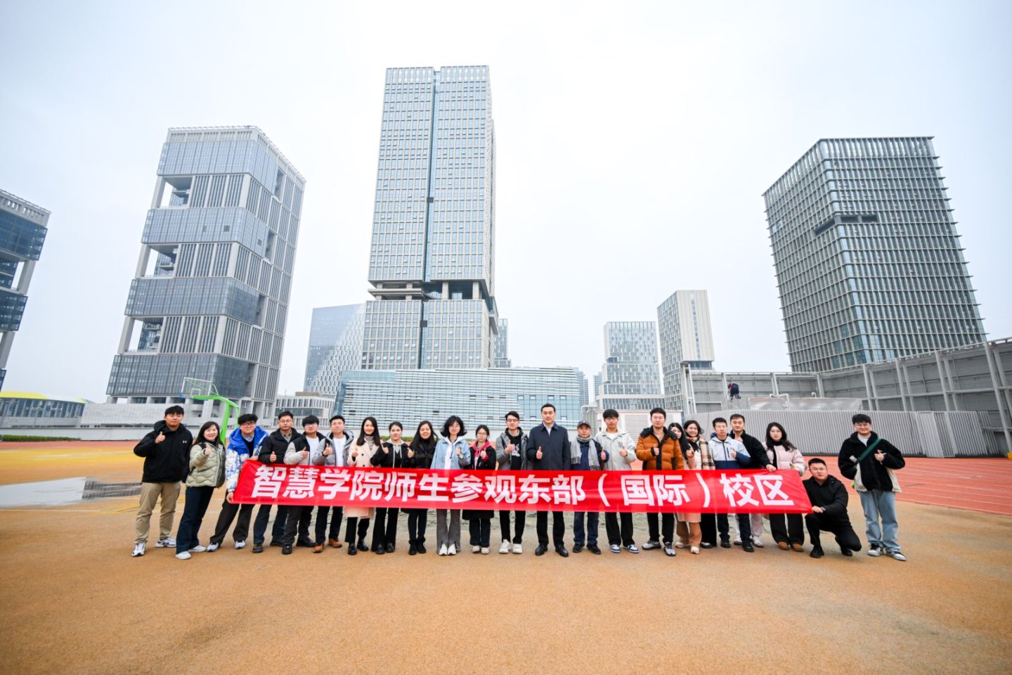 新入职教职工和师生代表前往东部(国际)校区,进一步了解校区建设进展。