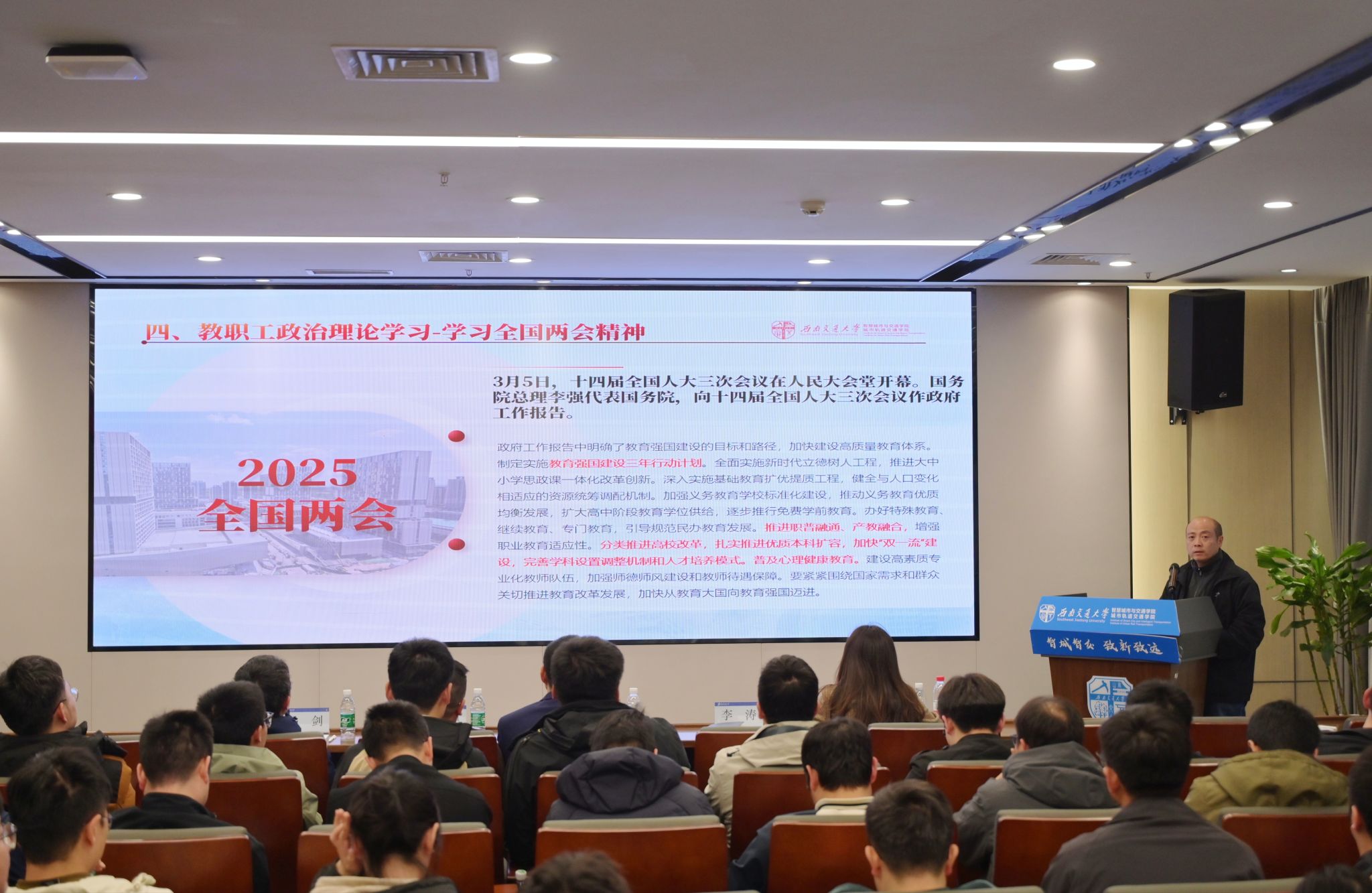 开展教职工政治理论学习。李涛领学全国两会精神、av影片直播