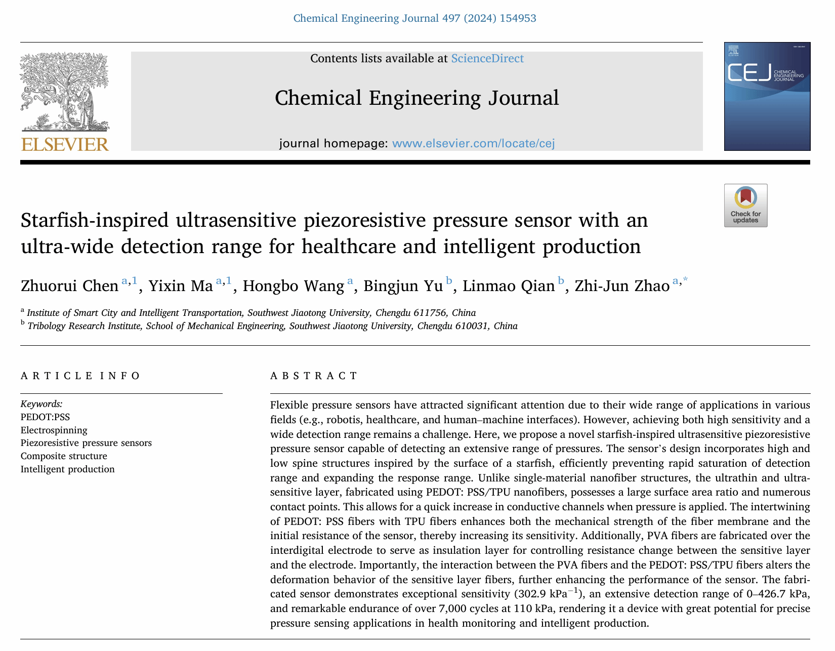 教师赵志俊指导,陈卓锐、马弈新同学参加的《基于高性能海星仿生压阻传感器的病患关节运动智能分析与机能评价系统》项目荣获中国大学生机械工程创新创意大赛——“明石杯”微纳传感技术与智能应用赛全国总决赛本科生组一等奖。