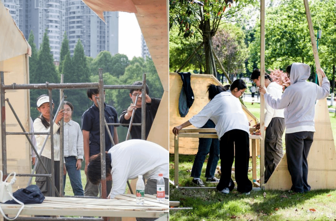 此次建造节于我们而言有苦有甜,累并快乐着。小组由城市设计两个班级的同学共同组成,随着建造的深入,组员之间的了解逐渐增进,关系也愈发紧密。通过对时间的合理安排,我们团结一致,分工明确,高效地完成了最初设定的施工计划,既参与了建造过程,也有自己的休息时间,真正地在劳动节中懂得了劳动的意义。历经六天五晚,我们对劳动、青春有了更深刻的理解。