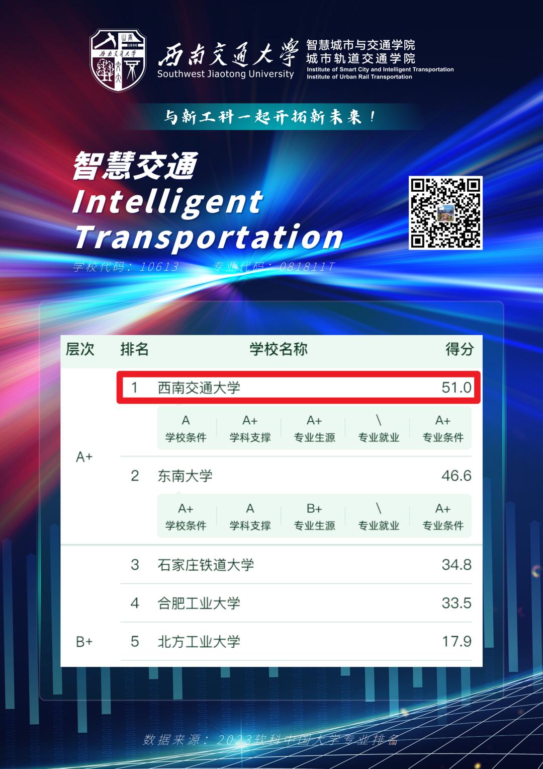 智能建造、智能制造工程位列A层次,排名全国第5、第10。新能源科学与工程、城市设计位列B+层次,排名全国第20、第3。智慧交通位列A+层次、排名全国第1。五个新工科专业全部上榜,彰显了av影片直播 和av影片直播 在人才培养方面的专业实力。