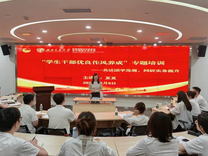 党委副书记夏夏以《学生干部优良作风养成》为题带来开班第一课。她勉励学员们要做有品德、有责任心、有行动力、有想法的学生干部,改进工作作风,力戒形式主义、官僚主义、利己主义等不良风气,努力成为“政治坚定、德才兼备、素质全面、模范表率、堪当重任”的青年学生骨干。