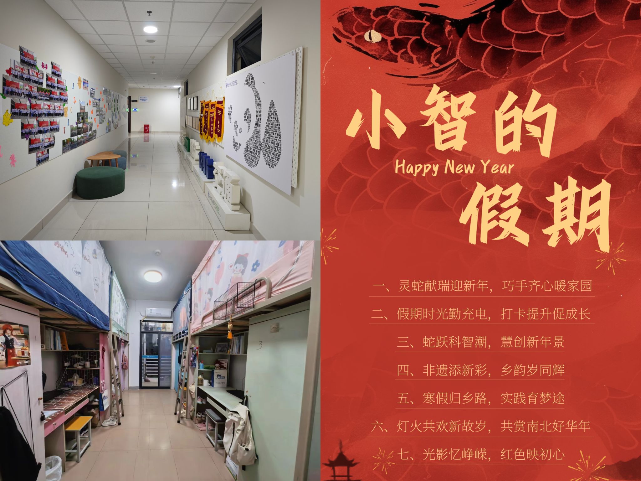 营造温馨的宿舍文化空间,在学生园区举办“小装潢·大智慧”“小收纳·大智慧”大赛,全覆盖学生宿舍,让学生在潜移默化中接受艺术熏陶。充分利用新媒体线上空间,举办“小智的假期”主题作品征集活动,打造“智慧光影”系列活动,拍摄记录传递东部(国际)校区建筑之美、环境之美。
