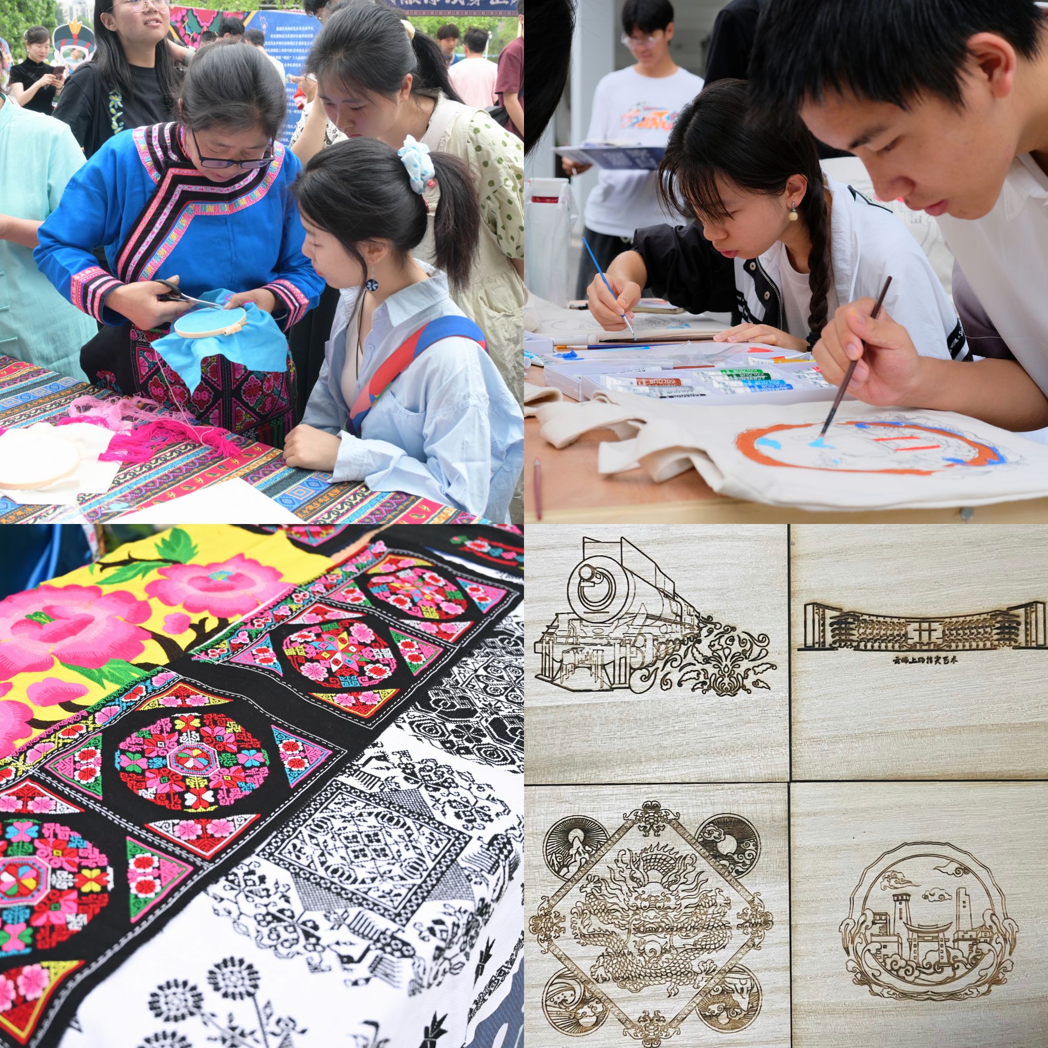 大学生文化艺术节项目和大学生文化艺术审美与创新训练计划,紧紧围绕国家级非物质文化遗产、西南少数民族文化典型代表——“羌绣”这一优秀传统文化元素,通过现场讲解、绣品展示、羌绣教学、纹饰复刻、服饰试穿等形式,多层次、全方位展示羌绣之美,活动共吸引1200余名师生参与。