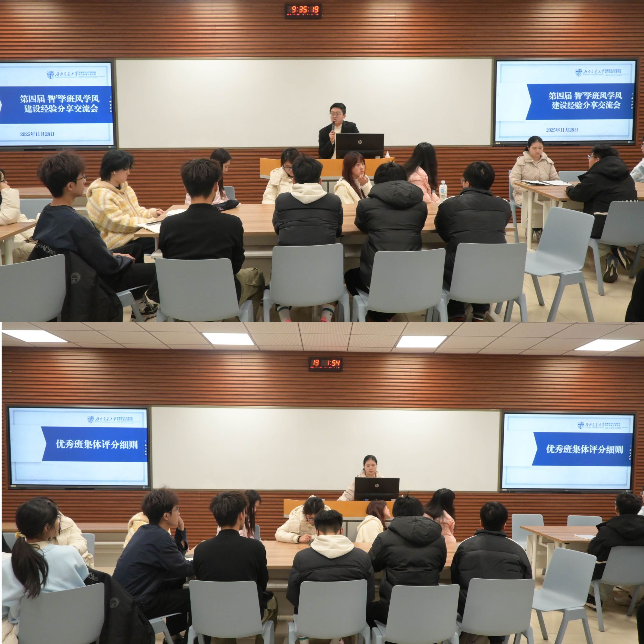 学生会主办的第四届“智”学班风学风建设经验交流会在X1301顺利举办。本次交流会邀请高年级优秀班集体班委代表与新生班委代表,通过经验分享、分组研讨的形式,共探班级建设新思路。