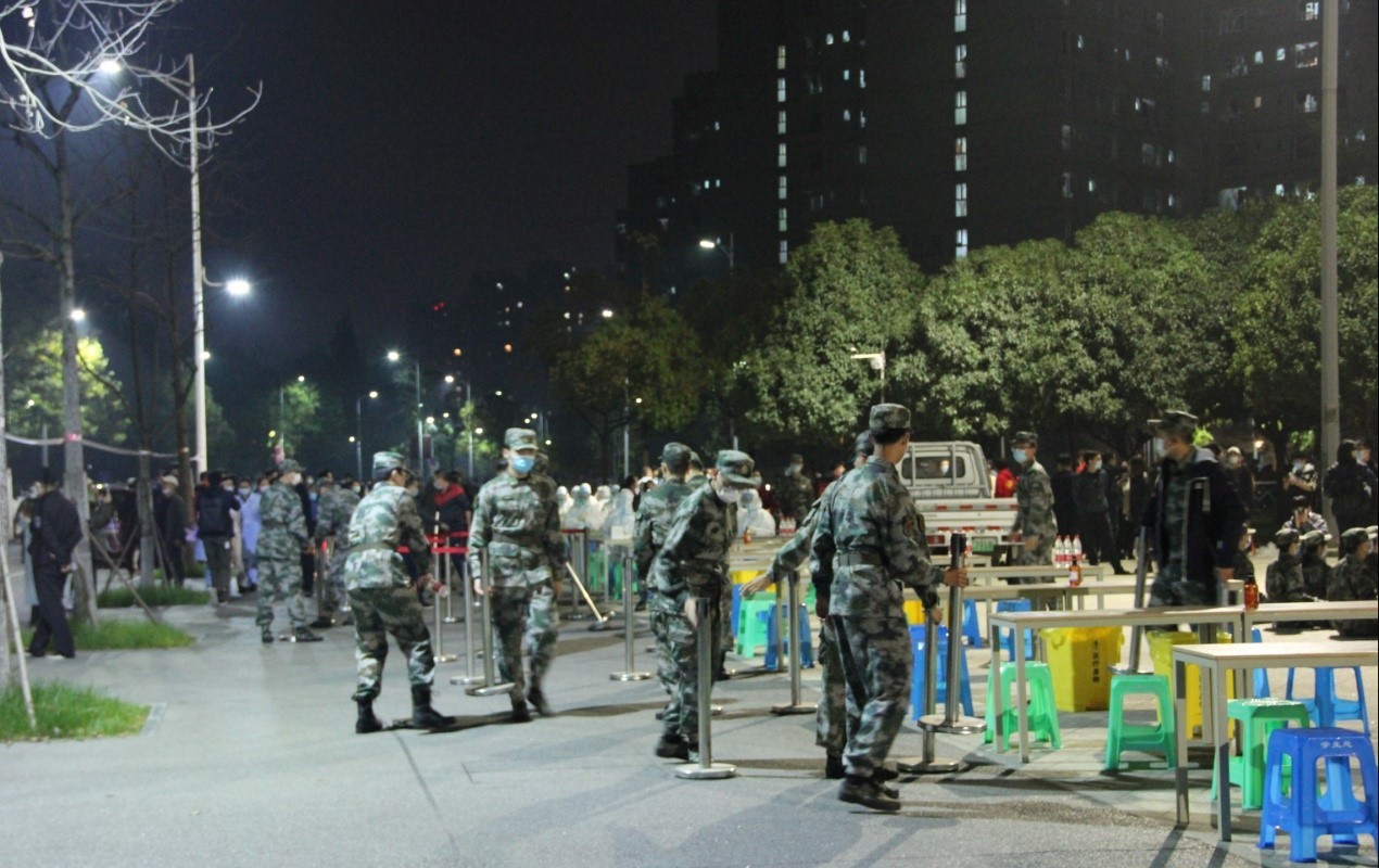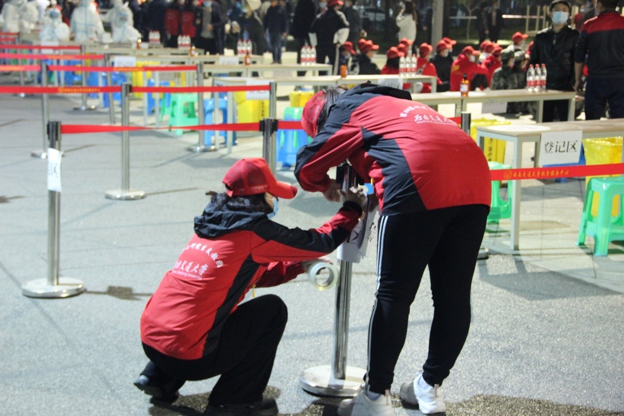 李昊杰、牛玉杰、王少宁、李搏文、陈卓锐、李龙菲、任曦、樊潇等多名同学以国旗班成员和志愿者的身份参加此次行动,协助布置现场并维护秩序,帮助医护人员更好地开展工作,至5日早5时全校核酸检测完成后方才离开休息。经此一晚,他们更加感受到了国旗班肩上的重任,深刻体会到了疫情之下大家的辛勤不易,同时感谢大家的付出与配合。