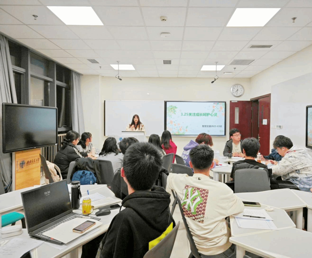 各班级于3月陆续全面开展“3·25(善爱我)”心理健康教育主题班会,围绕心理健康的重要性、情绪压力调节、人际交往焦虑等方面,宣传心理健康知识,提高同学们对心理健康的认识和关注度。班导师、辅导员老师广泛参与其中,引导同学们在学习生活中保持积极向上的心态。