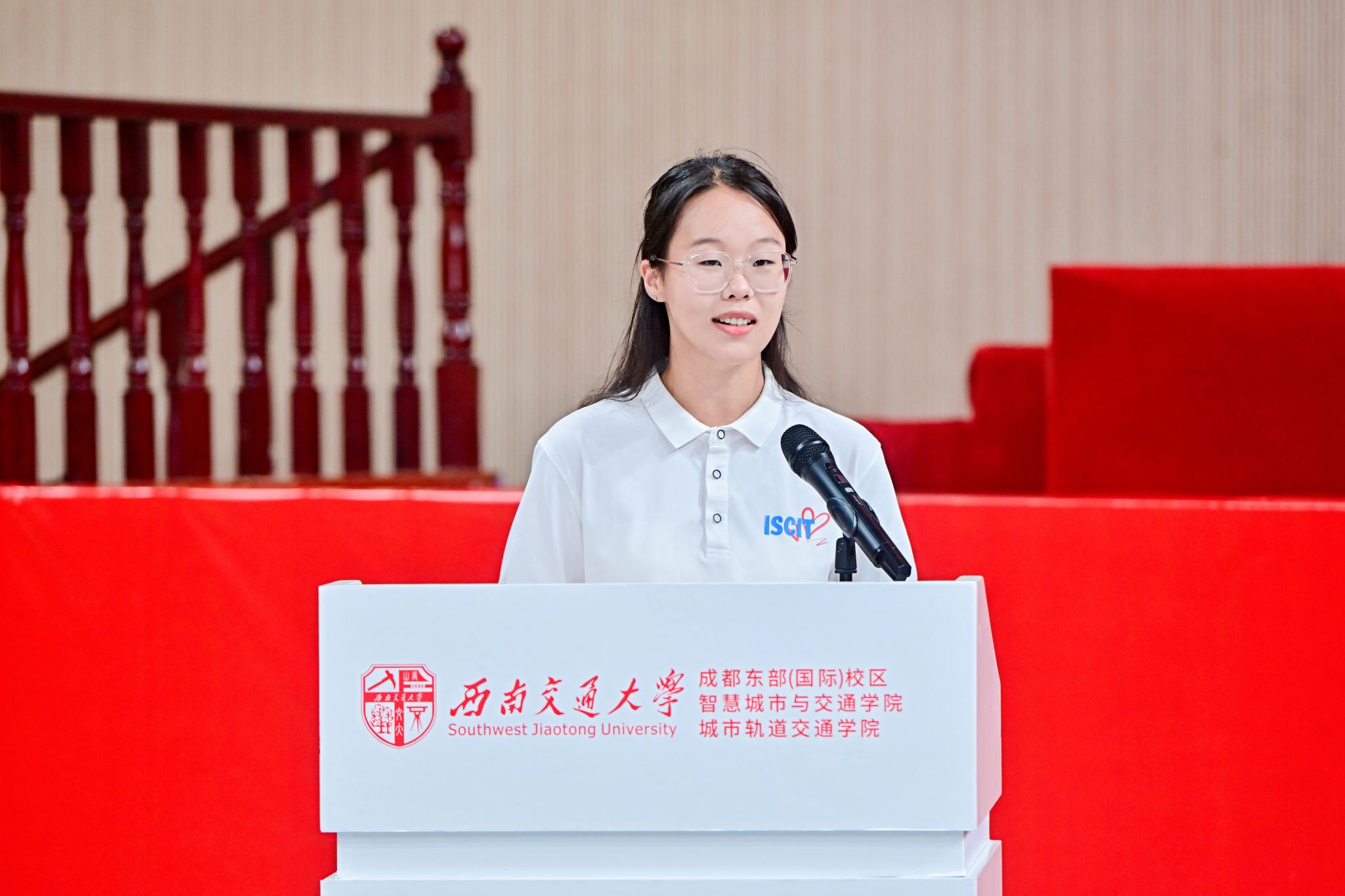 智慧交通2024-01班许天资作为新生代表发言。“想,都是问题;做,才是答案”!她认为,人生只有走出来的美丽,没有等出来的辉煌,所以拒绝拖延,敢想敢做才是硬道理。她与在座全体新生共勉,期待与同学们并肩前行,收获成长。