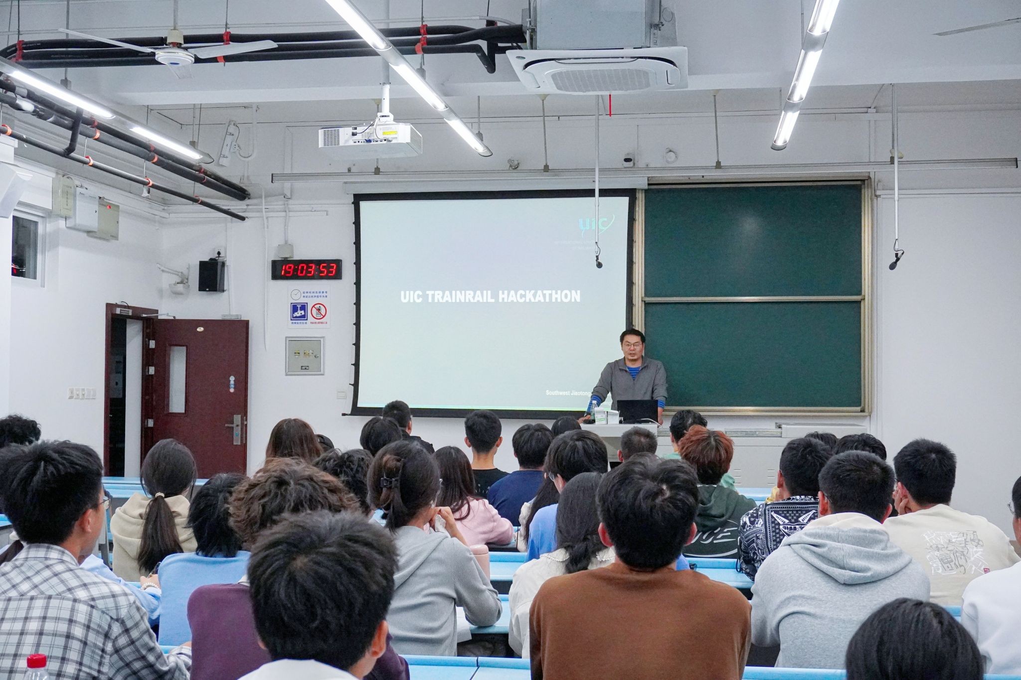 李君从国际铁路联盟创立历史及其使命出发为同学们详细讲解了赛事的起源和发展方向。随后,他介绍了参赛事项、参赛情况以及参赛要求,并以往届参赛获奖作品为例,具体分析了参赛方向。他鼓励同学们以可持续性发展等概念为主题进行赛事准备。在认真听取讲座之后,同学们就参赛要求、组队构成等方面细节进行踊跃提问,李君耐心回答了各个问题。此次科创讲座不仅为学生们提供了一个深入了解全球铁路行业创新发展的平台,更激发了他们参与科创竞赛的热情。