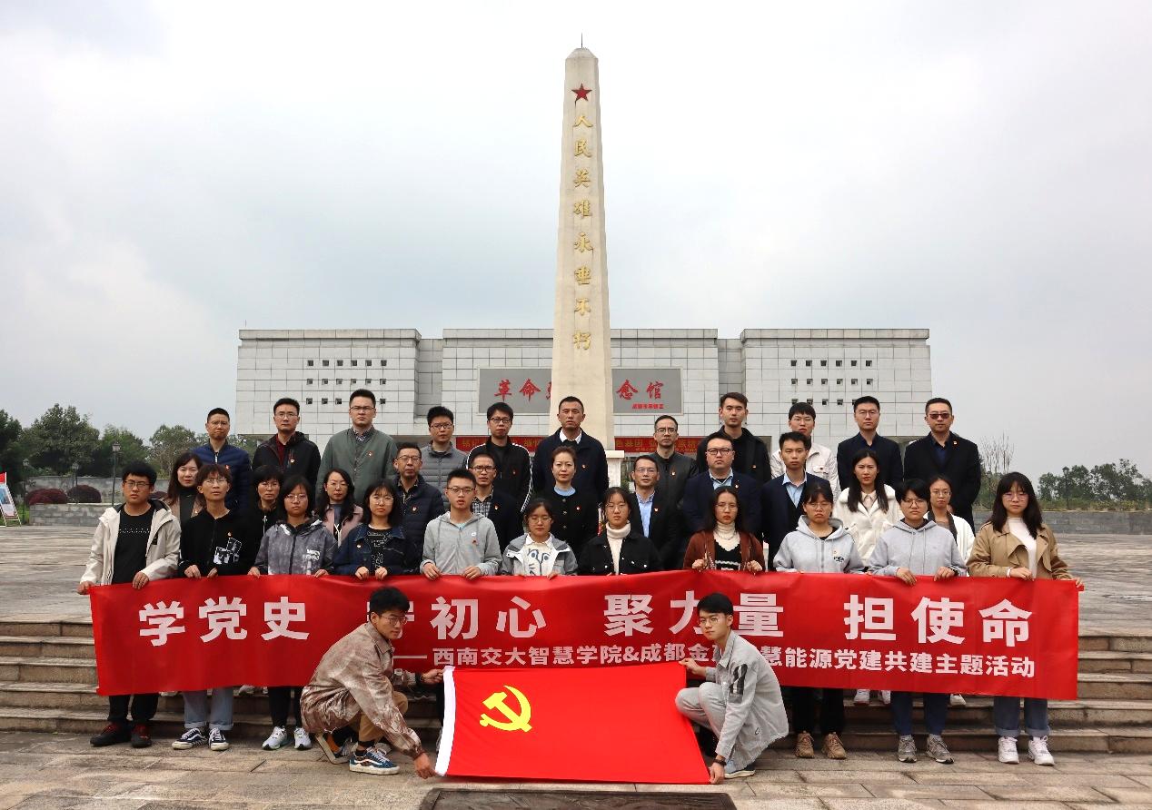 10月28日下午,av影片直播 机关党支部与成都金茂智慧能源科技有限公司党支部赴郫都区烈士陵园和战旗村开展“学党史 守初心 聚力量 担使命”党建共建主题党日活动。av影片直播 党委副书记罗妍妍、教职员工、2021级学生骨干和成都金茂智慧能源科技有限公司刘政总经理、郎秀峰党支部书记等参加活动。